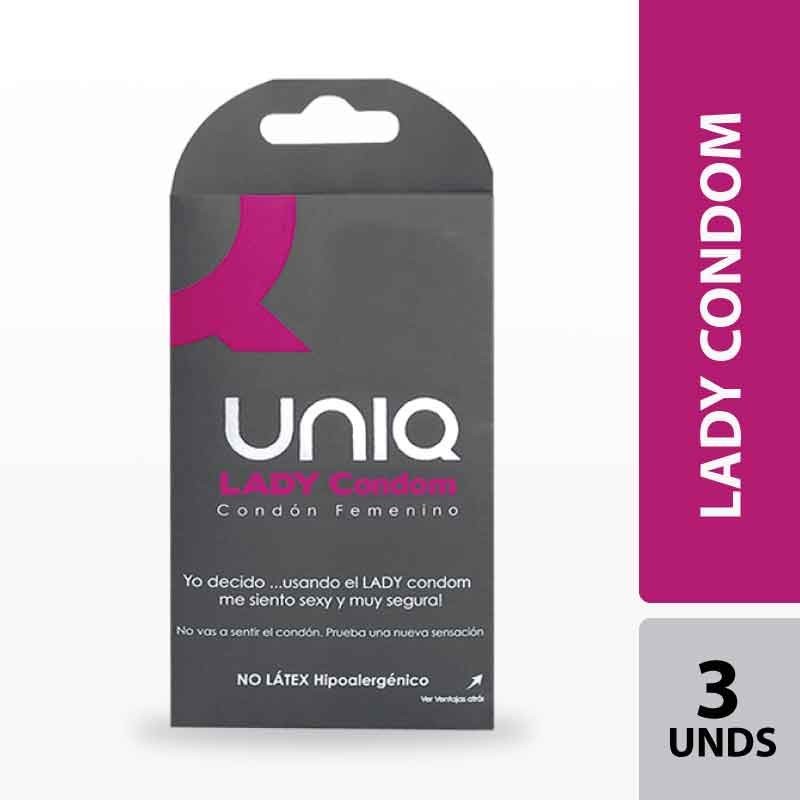 Condón femenino, lubricado; con burbuja de aire como mecanismo de retención interna y delicados sujetadores de encaje que simulan ligas. Muy fácil y cómodo para insertar.