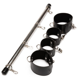 Barra espaciadora fabricada en acero y esposas en cuerina, contiene 4 candados